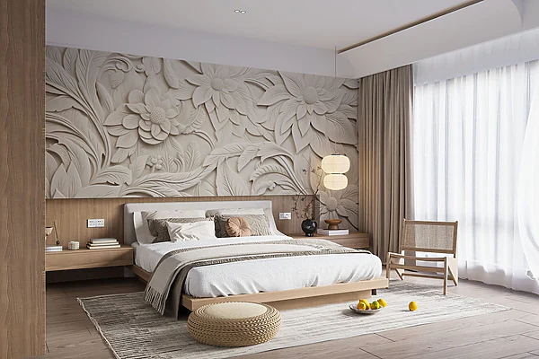 710.92 грн426.55 грнФотошпалери Біла стіна з квітами та листям