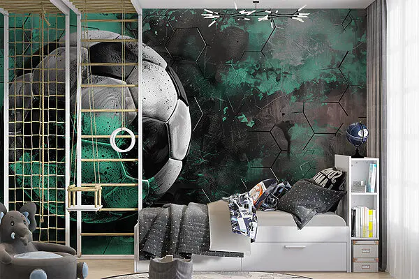 748.34 грн449.00 грнФотошпалери Футбольний м’яч на зелено-чорному тлі