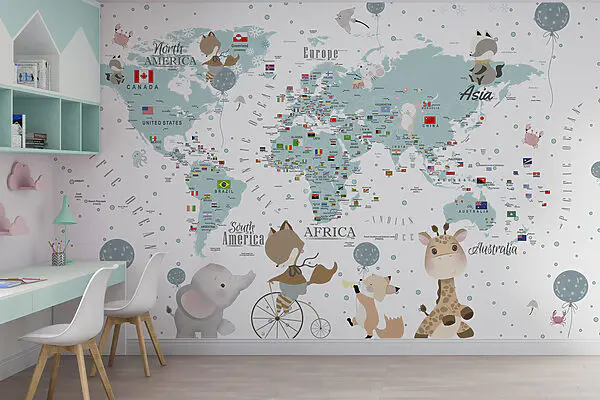 163.88 грн98.33 грнФотошпалери Карта світу з тваринами та повітряними кулями