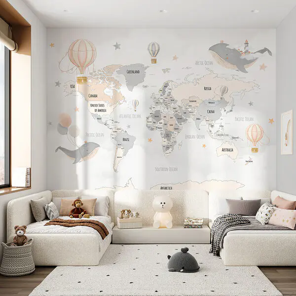 172.50 грн103.50 грнФотошпалери Карта світу з тваринами та повітряними кульками