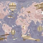 Фотошпалери Карта світу з літаками та повітряними кулями