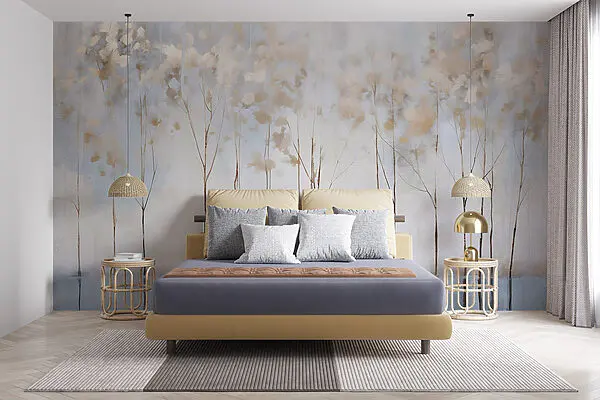 Природна витонченість і затишок | Тонкі силуети беріз, біляста кора, ніжне зелене листя додають інтер’єру атмосферу комфорту та стилю. |