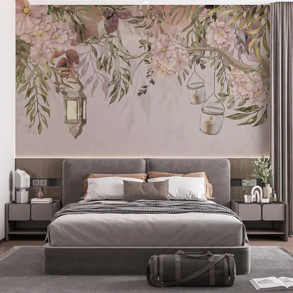 748.34 грн449.00 грнФотошпалери Картина дерева з квітами та ліхтариками