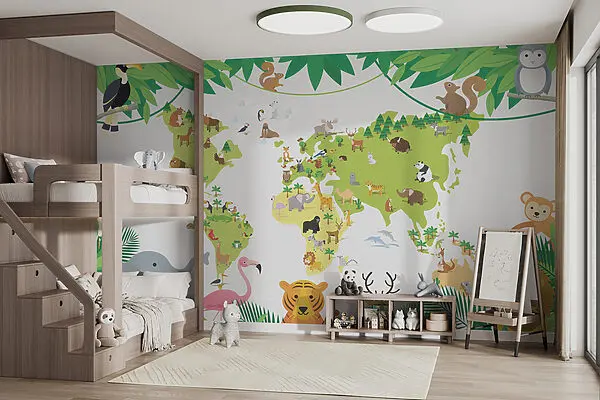 172.50 грн103.50 грнФотошпалери Карта світу з тваринами