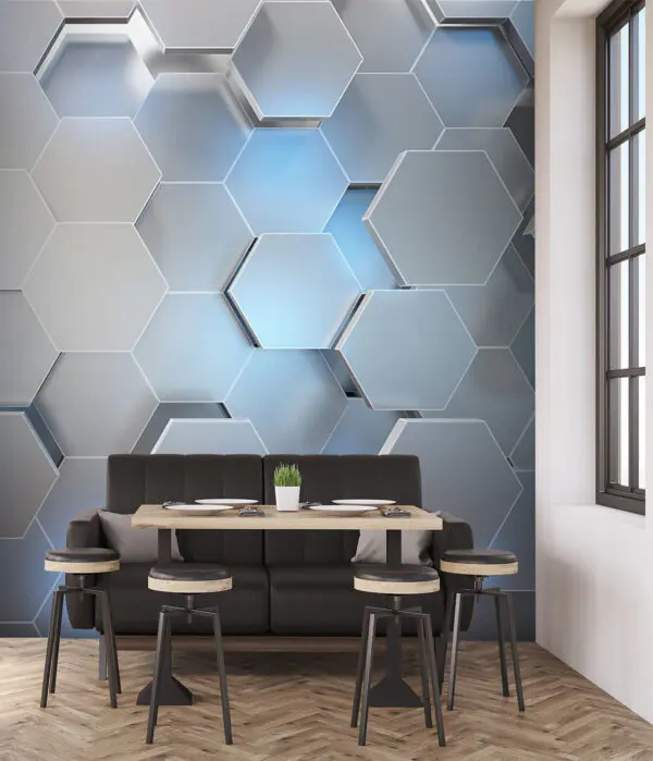 172.50 грн103.50 грнФотошпалери Білі шестикутники з синім світлом