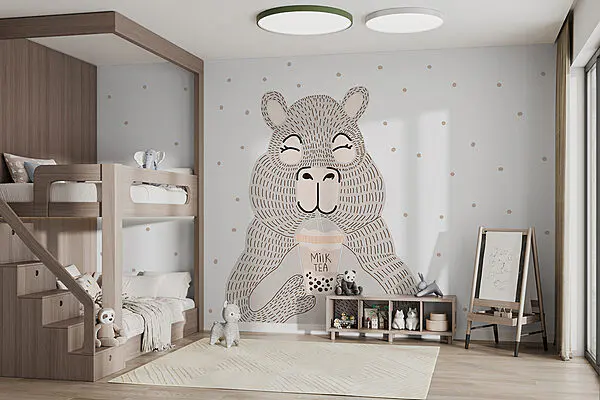 Фотошпалери Фотошпалери Карикатура на ведмедя з бульбашковим чаєм (Артикул: w01122)