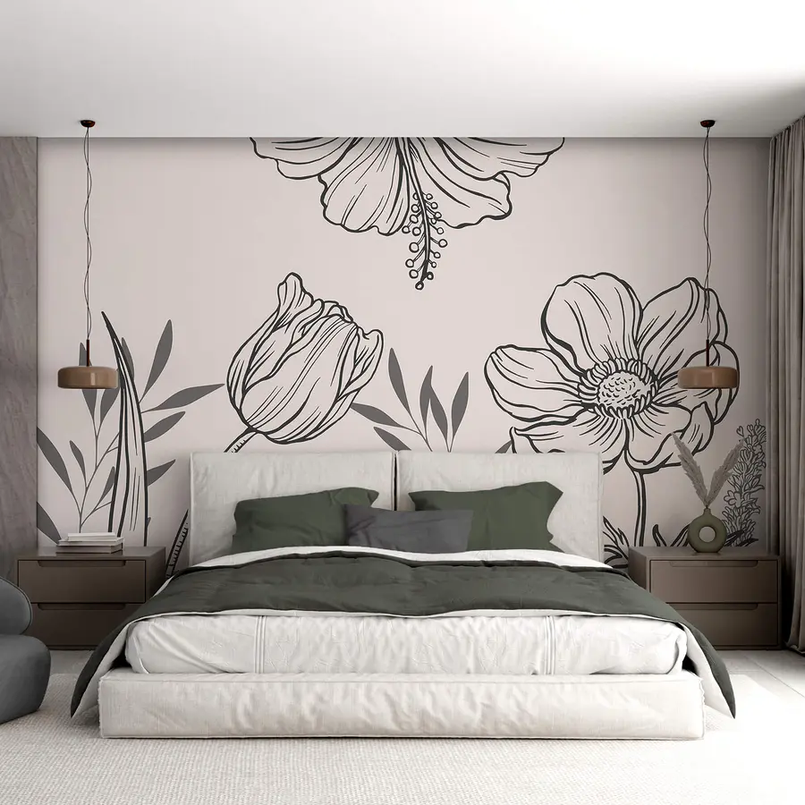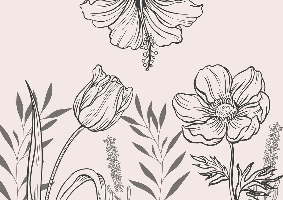 Фотошпалери Ніжний квітковий лінійний дизайн