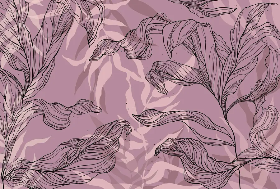 Фотошпалери Малюнок листя на фіолетовому тлі