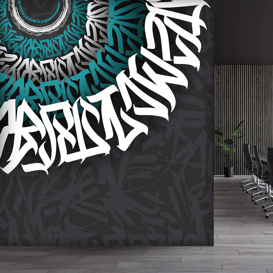Фотошпалери Біло-блакитне графіті на чорному тлі
