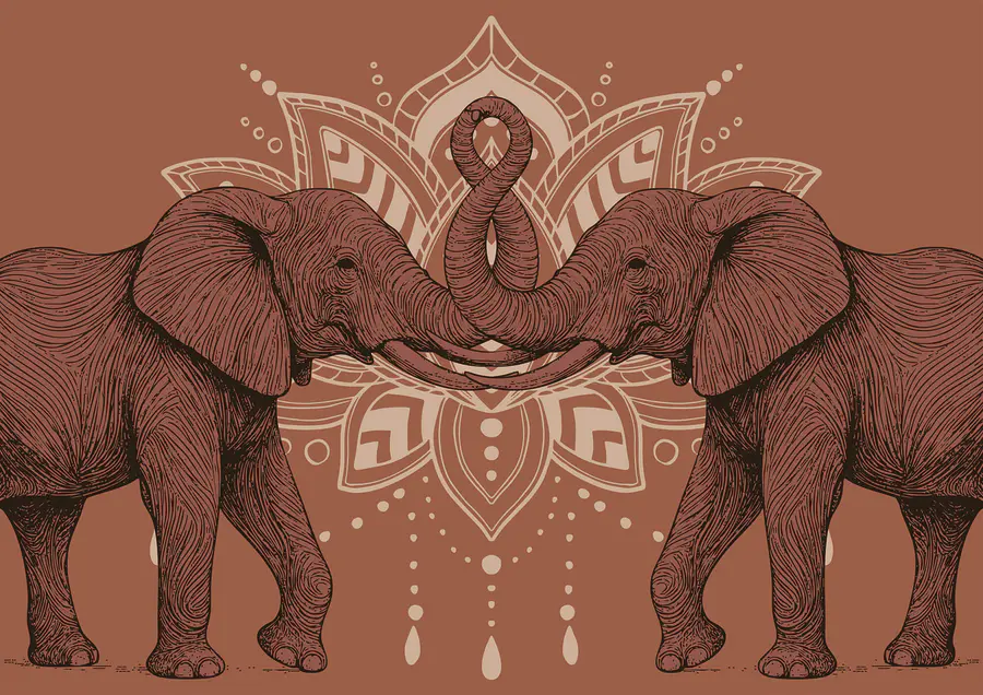 Фотошпалери Два слони, що торкаються один одного хоботами