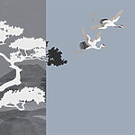 Фотошпалери Пара журавлів, що летять поруч з деревом