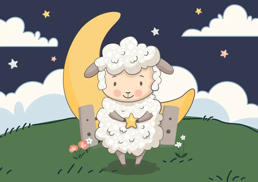 Фотошпалери Карикатура на вівцю, яка тримає зірку