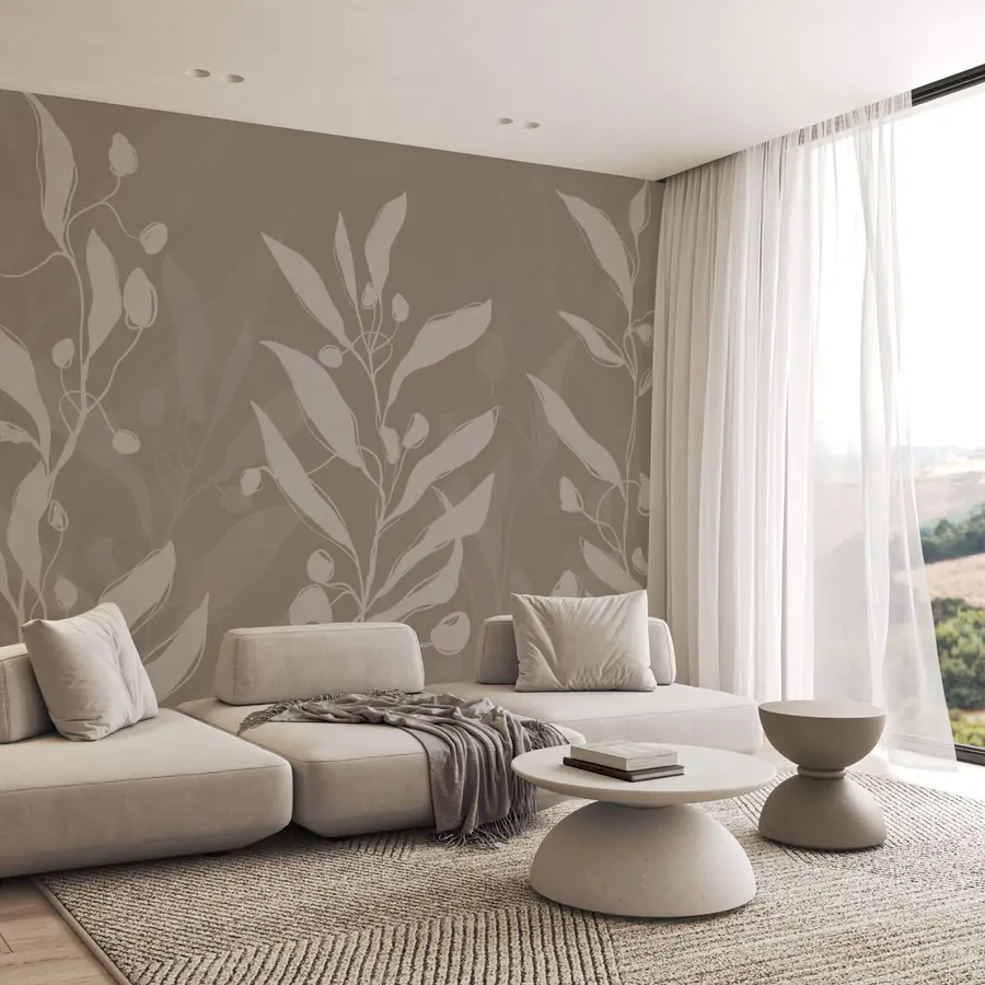 Фотошпалери М’який ботанічний дизайн на нейтральному тлі