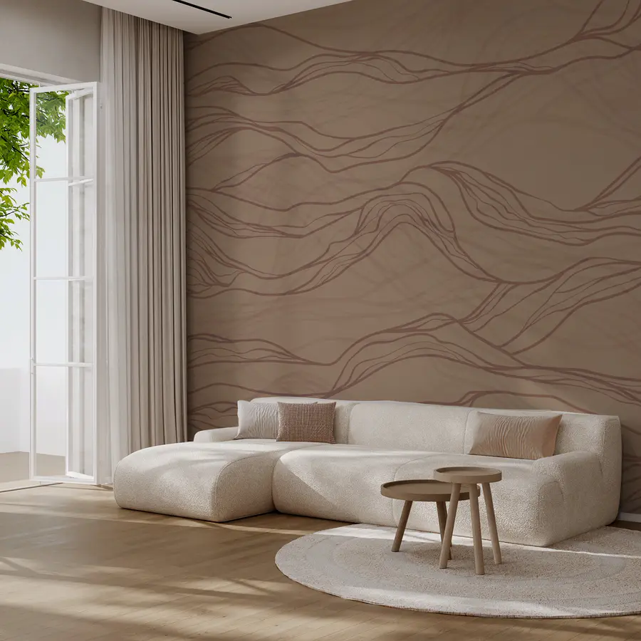 Фотошпалери Коричневі хвилясті лінії на засмаглій поверхні