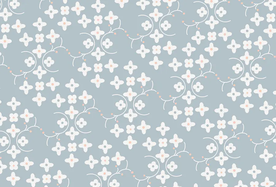 Фотошпалери Візерунок з білих квітів і рожевих крапок на блакитному тлі