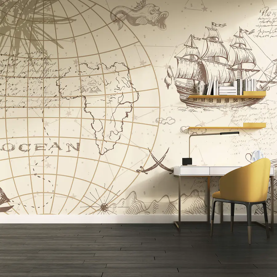 Фотошпалери Карта світу та корабель