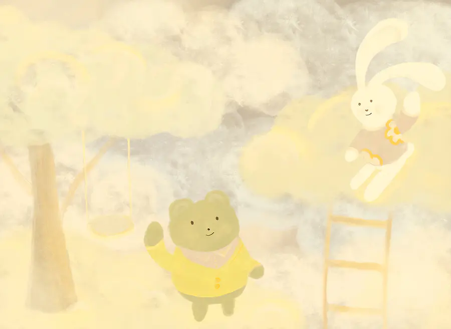 Фотошпалери Мультяшний ведмедик і зайчик у хмарах