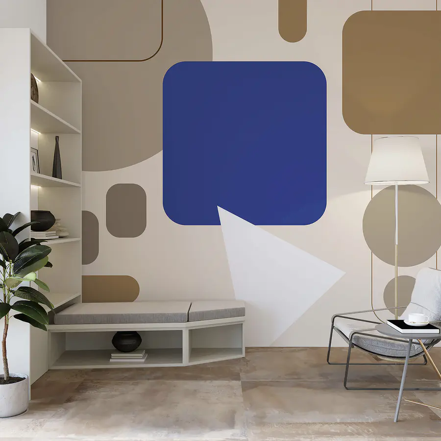 Фотошпалери Сині та коричневі квадрати та біла стрілка