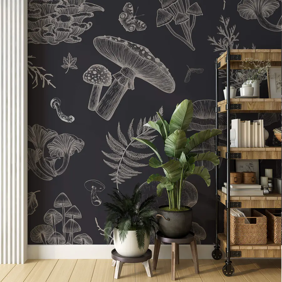 Пориньте у світ, де природа промовляє до ваших стін! Цей фотошпалери з чудовим поєднанням грибів та листя принесе свіжість та відчуття землі у ваш затишний простір. Уявіть, як ви прокидаєтеся кожного дня з відчуттям, що блукаєте химерним лісом - на щастя, без жуків. Кожна делікатна ілюстрація має власну історію, і вони ідеально поєднуються, створюючи атмосферу, яка одночасно розслабляє та надихає. Ідеально підходить для вітальні, спальні або затишного куточка для читання, про який ви мріяли. Хто б не хотів випити кави в оточенні цього чарівного лісу?