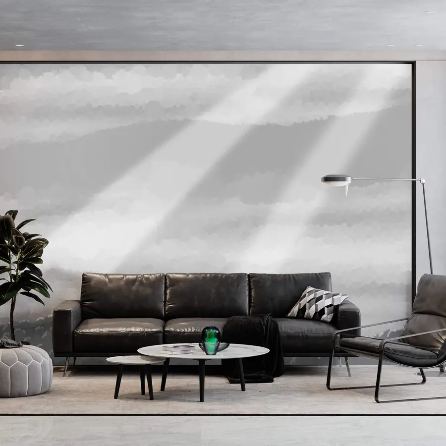 Фотошпалери Графічне зображення хмар і сонячних променів у відтінках сірого