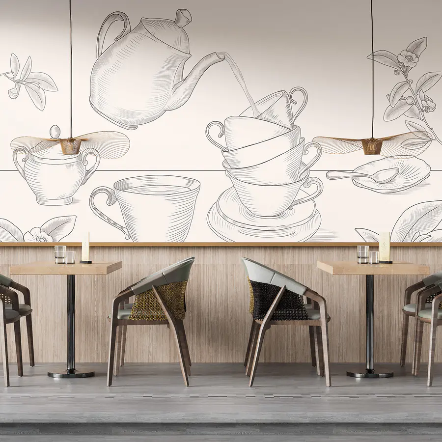 Фотошпалери Чайник, що наливає чай у стос чашок