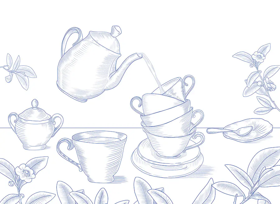 Фотошпалери Чайник, що наливає чай у стос чашок