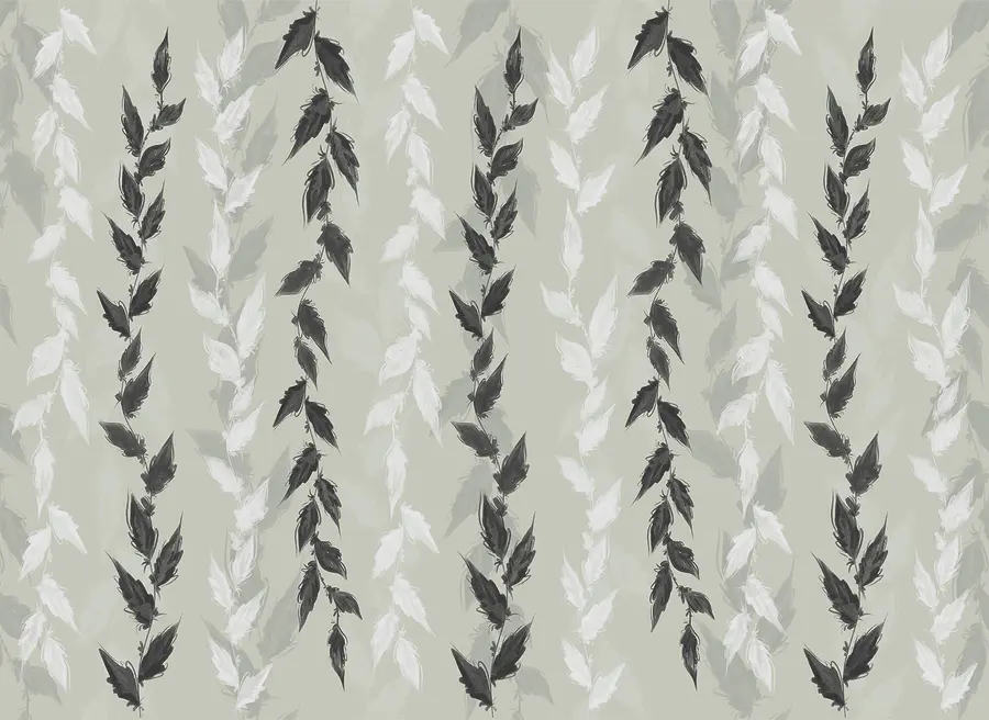 Фотошпалери Чорно-білі листя на сірому тлі