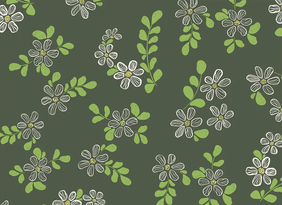 Фотошпалери Візерунок із білих квітів та зеленого листя