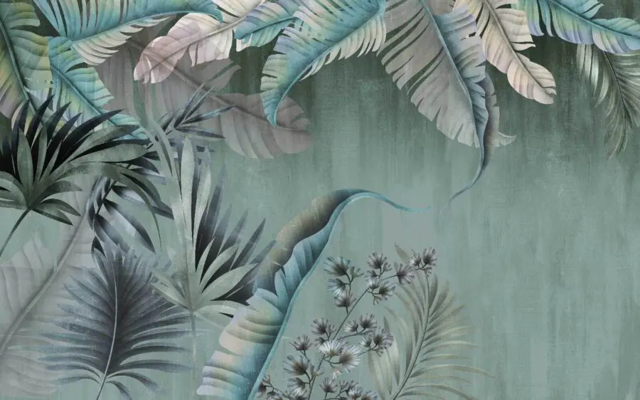 Фотошпалери Пишне тропічне листя в м’яких відтінках