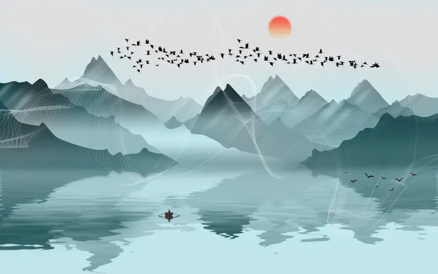 Перетворіть будь-яку стіну на безтурботний куточок за допомогою цього фотошпалера із зображенням зграї птахів, що ширяють над спокійним озером. Уявіть, як ви заходите в затишну кімнату, де зовнішній світ здається трохи ближчим, а ніжні блакитні та землисті тони приносять відчуття спокою. Ідеальний для житлового простору, він запрошує до умиротворення, перетворюючи звичайні моменти на міні-реколекції. Уявіть, як ви п'єте чай, насолоджуючись краєвидом, або навіть мрієте про пригоди на природі. Цей фотошпалери додає нотку вигадливості, яка може зробити простір живим, не привертаючи до себе зайвої уваги.