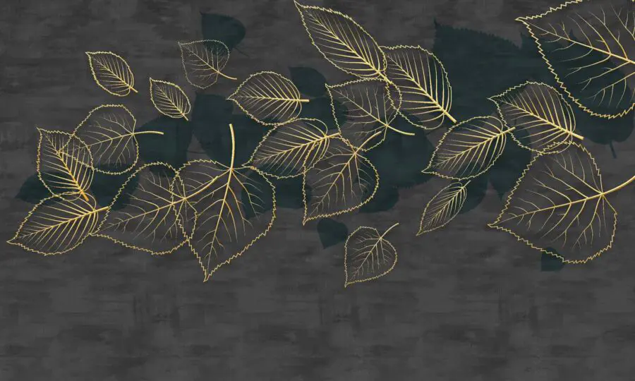 Фотошпалери Малюнок листя на чорному тлі