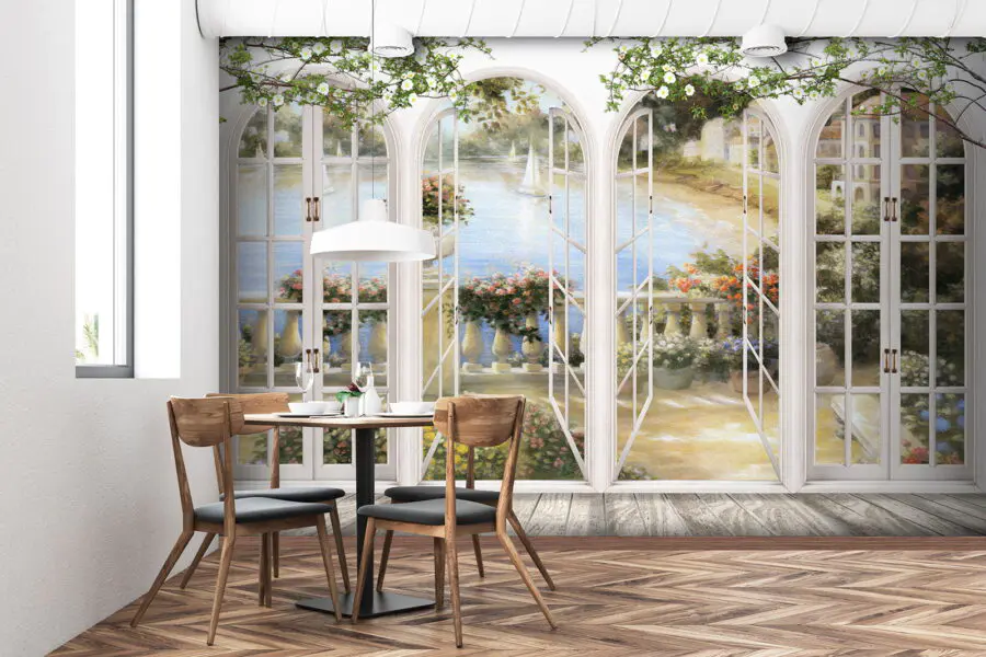 Фотошпалери Фотошпалери із зображенням саду з видом на балкон