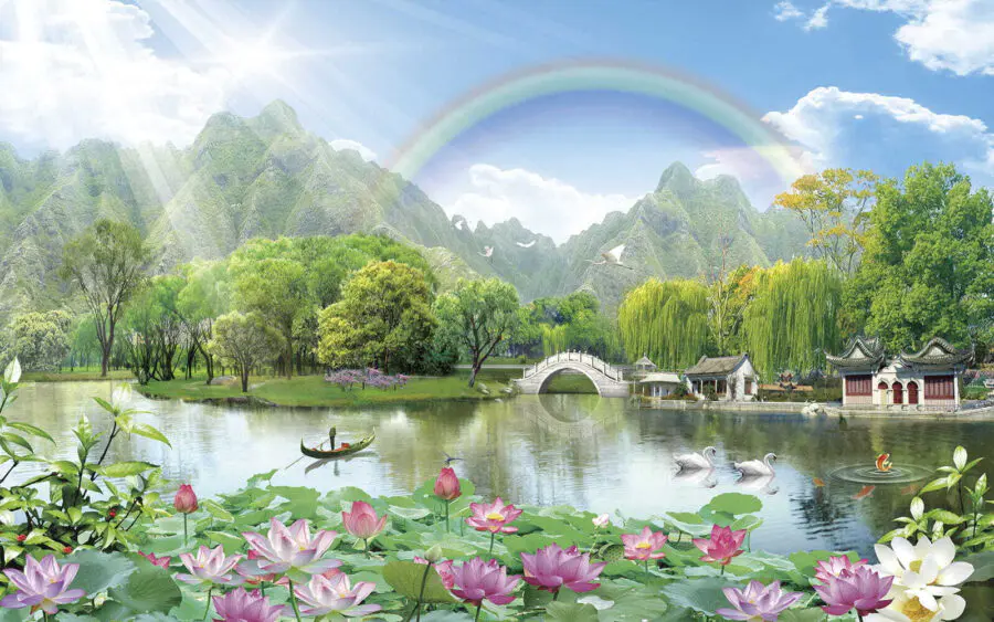 163.88 грн98.33 грнФотошпалери Малюнок ставка з містком і квітами