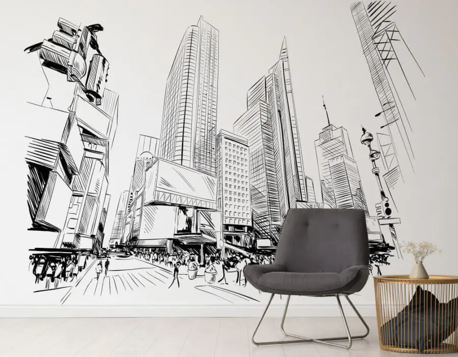 Фотошпалери Малюнок міста з високими будівлями