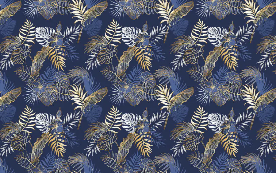 Фотошпалери Візерунок листя на синьому тлі