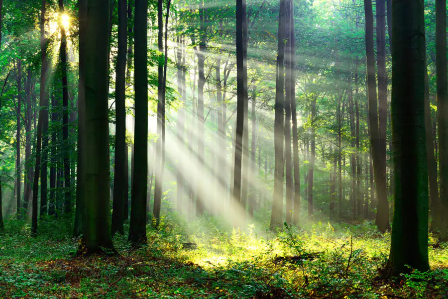Фотошпалери Сонячне світло пробивається крізь дерева