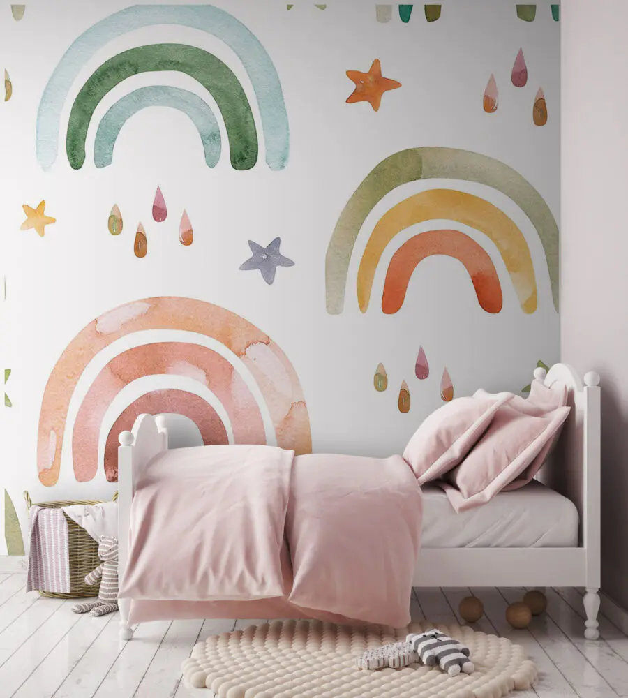 Перетворіть похмуру стіну на омріяний куточок за допомогою цього вигадливого акварельного фотошпалера з грайливими веселками та веселими зірками. Уявіть, як ви прикрасите затишну вітальню або додасте трохи магії в дитячу кімнату. Ніжні відтінки з легкістю вдихнуть життя в будь-який простір, роблячи його більш привабливим. До того ж, це ідеальна тема для розмови - хто не любить веселку? Це все одно, що принести частинку казки у свій дім. Прикрасьте свої стіни і спостерігайте за посмішками, які вона викликає! Серйозно, кожен погляд дарує трохи радості.