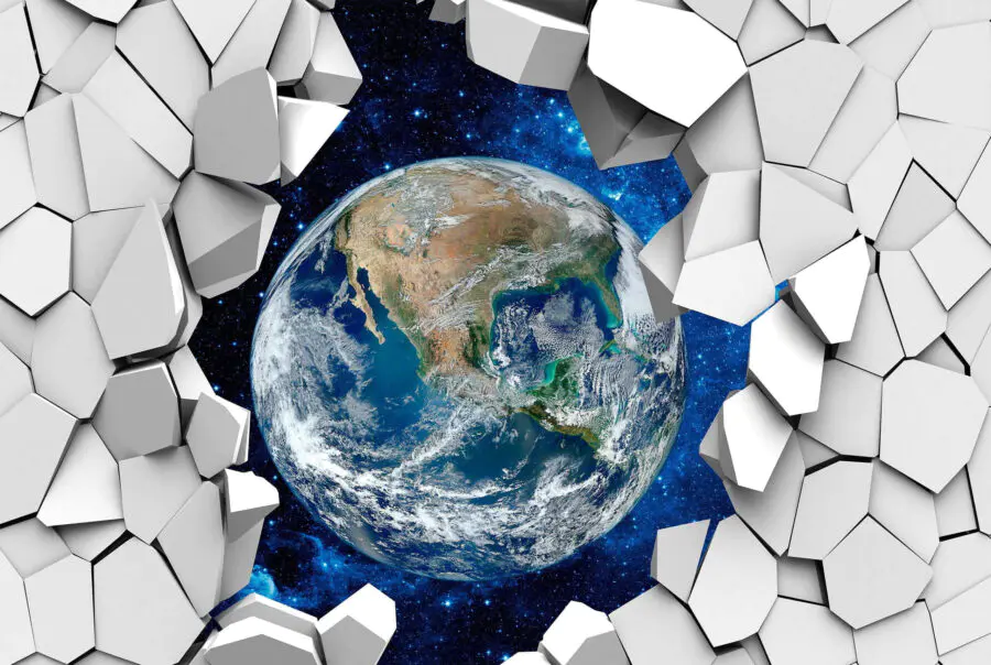 Фотошпалери Планета Земля проривається крізь дірку в стіні