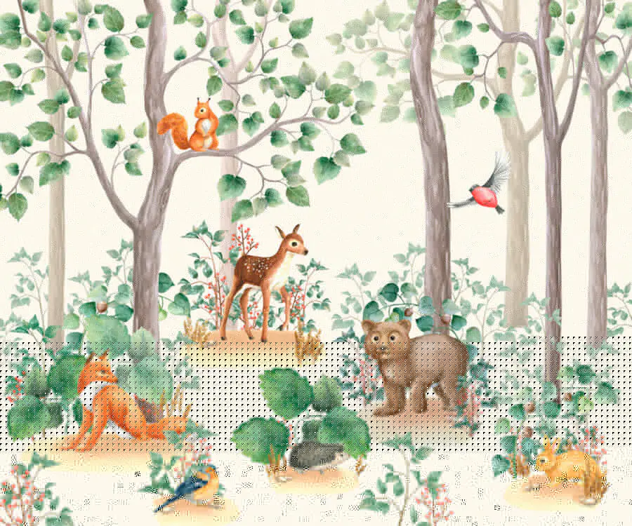 178.78 грн98.33 грнФотошпалери Акварельний живопис тварин у лісі