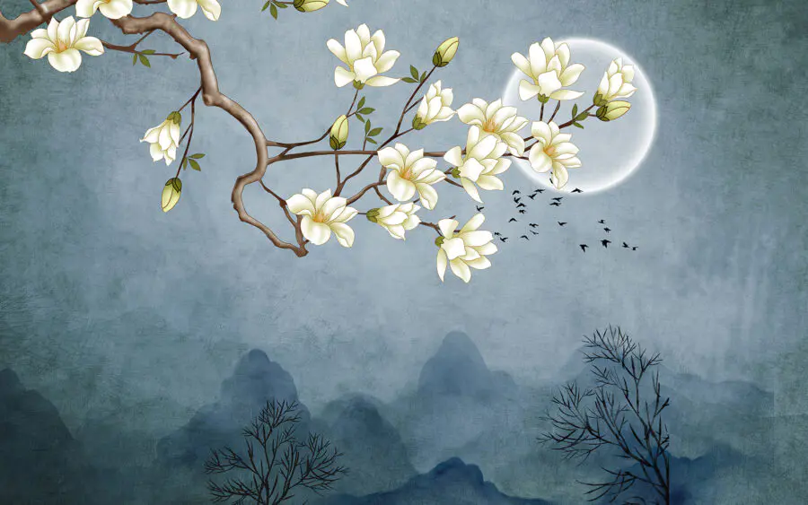 748.34 грн449.00 грнФотошпалери Малюнок гілки дерева з білими квітами