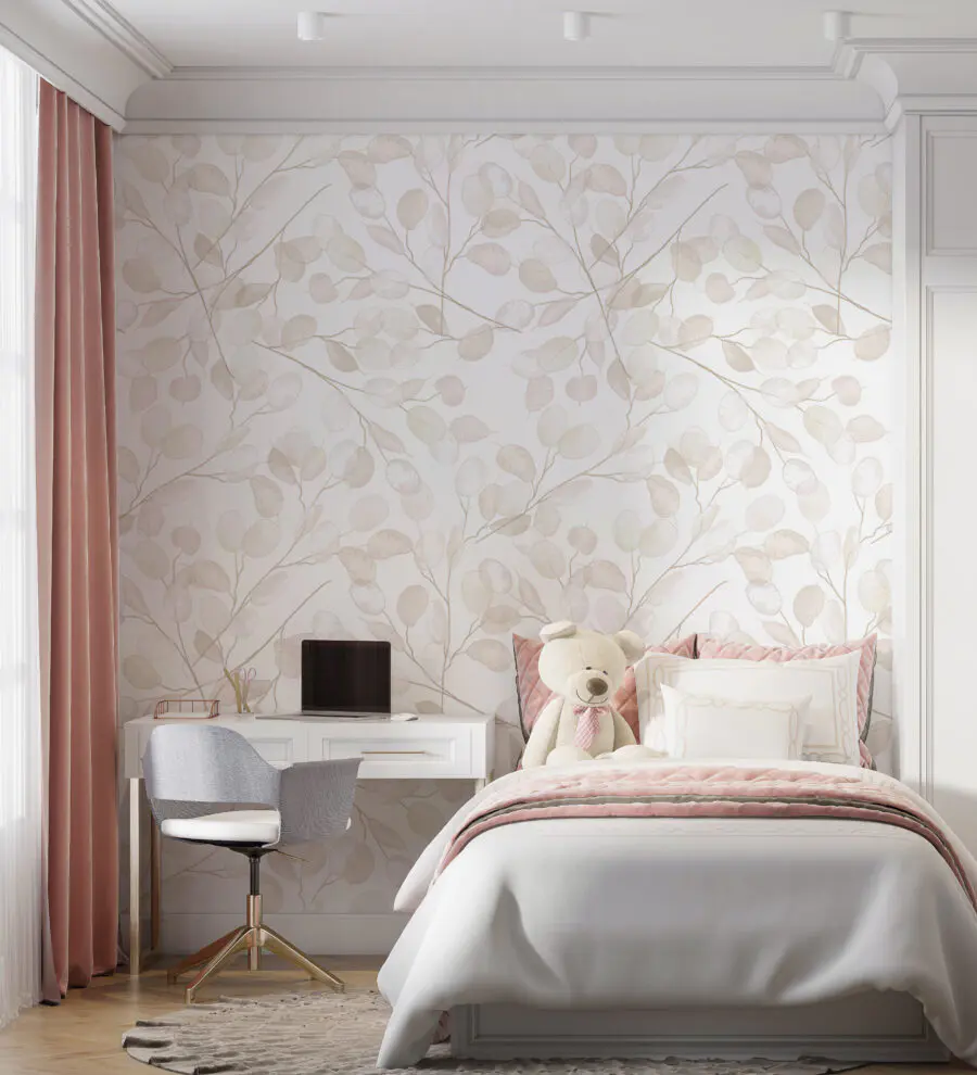 172.50 грн103.50 грнФотошпалери Біла стіна з квітами та листям