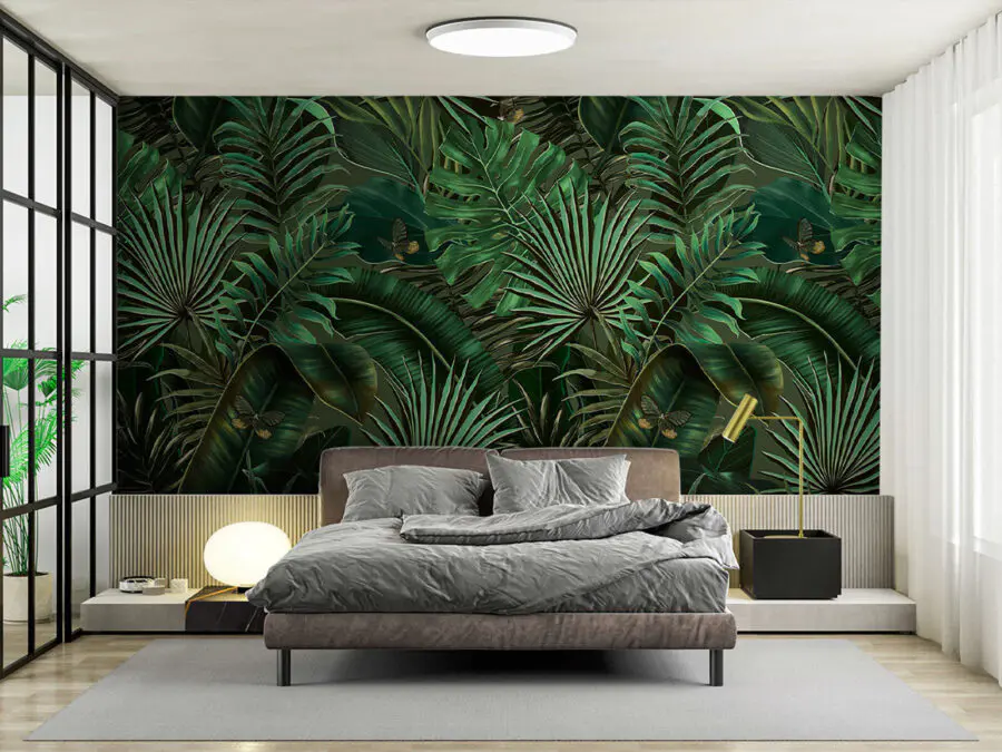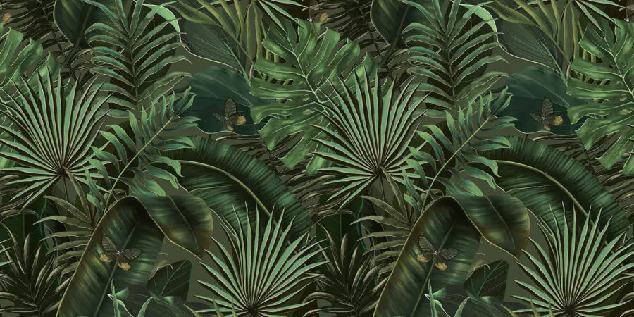 Фотошпалери Пишне зелене листя і приховані метелики