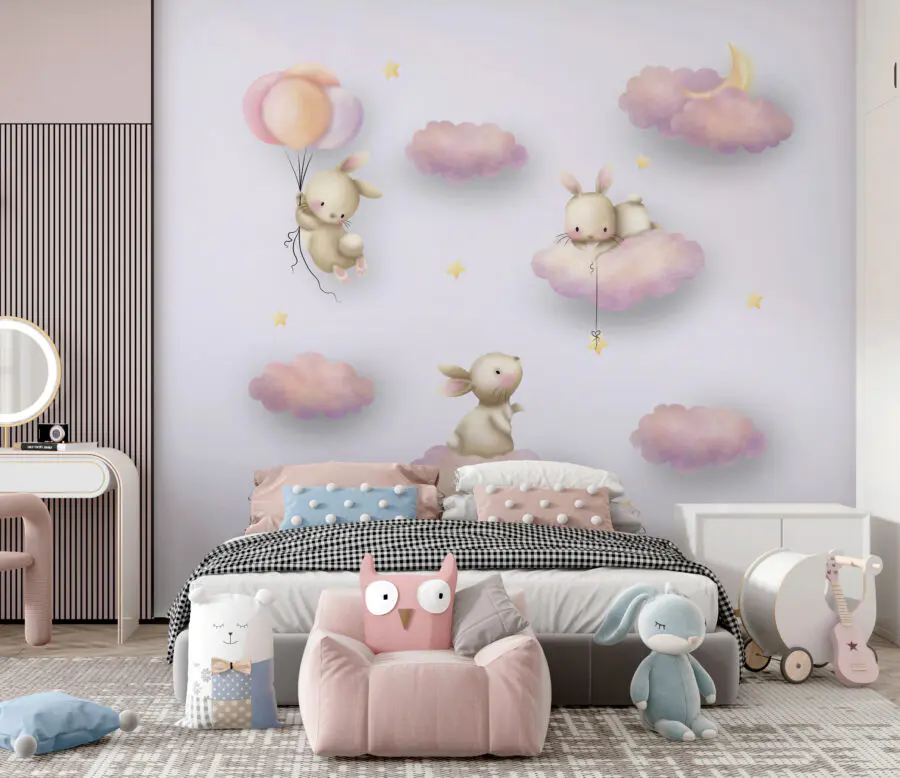 178.78 грн98.33 грнФотошпалери Група рожевих хмаринок і зайчик з повітряними кульками