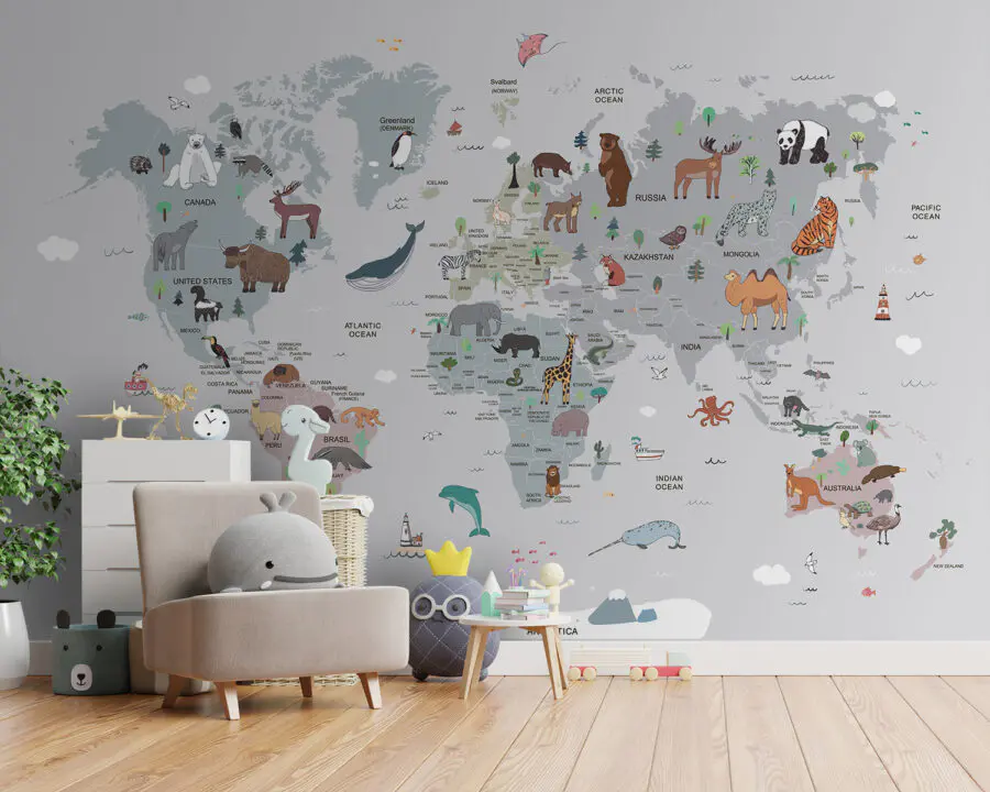 172.50 грн103.50 грнФотошпалери Карта світу з тваринами