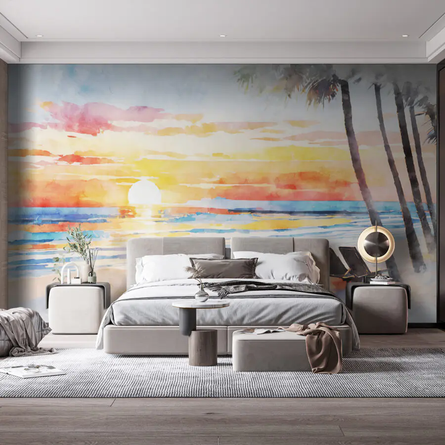 Фотошпалери Акварель пляжу із заходом сонця