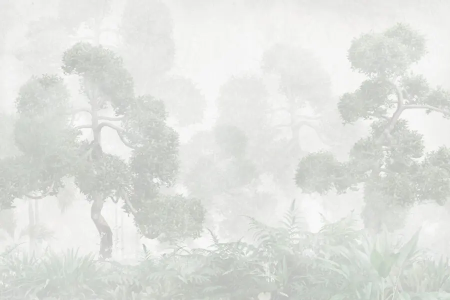 Фотошпалери Туманний ліс з деревами та папороттю