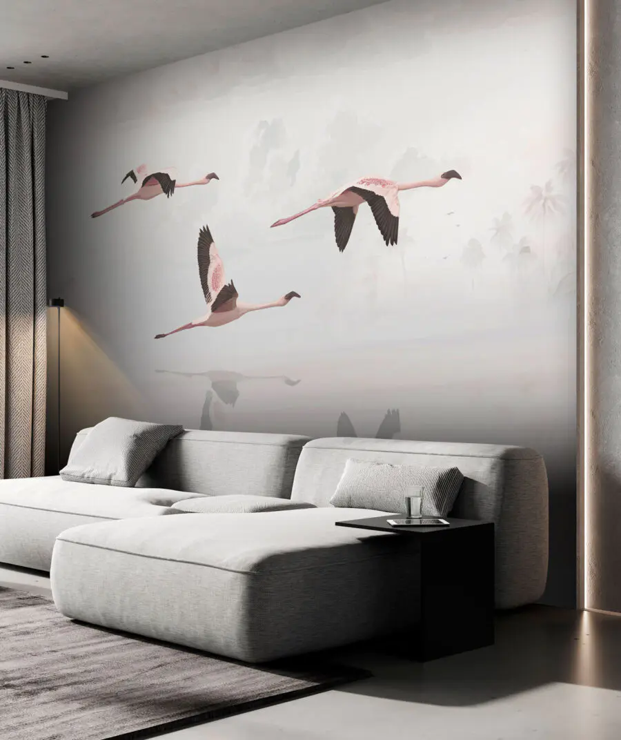 Фотошпалери Група фламінго летить над водою