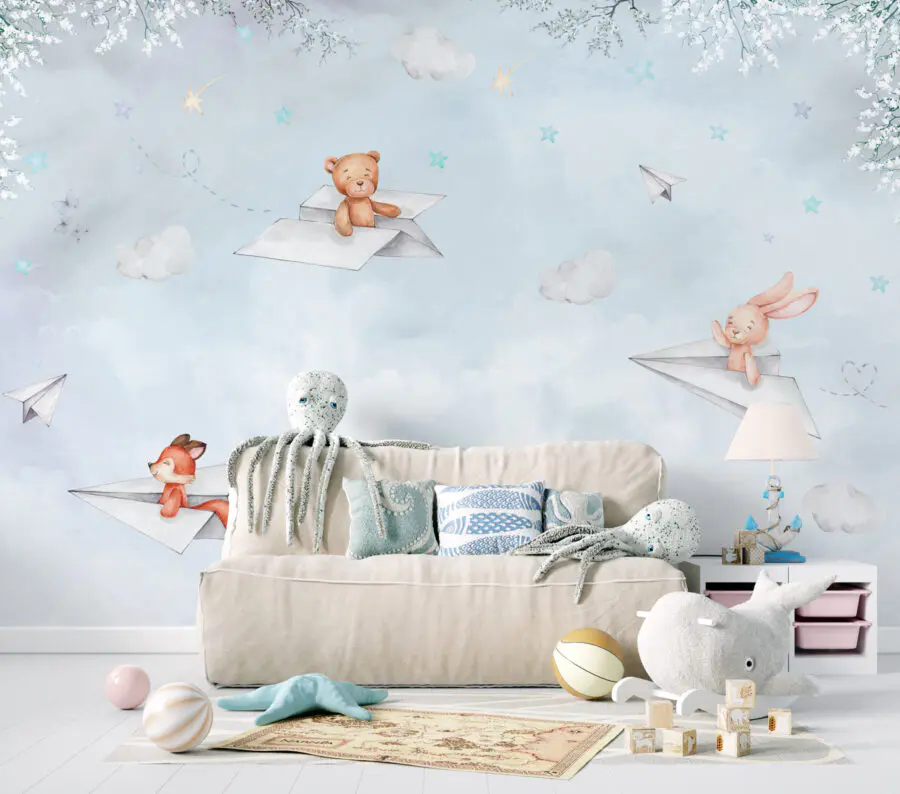 Фотошпалери Паперові літачки та плюшеві ведмедики