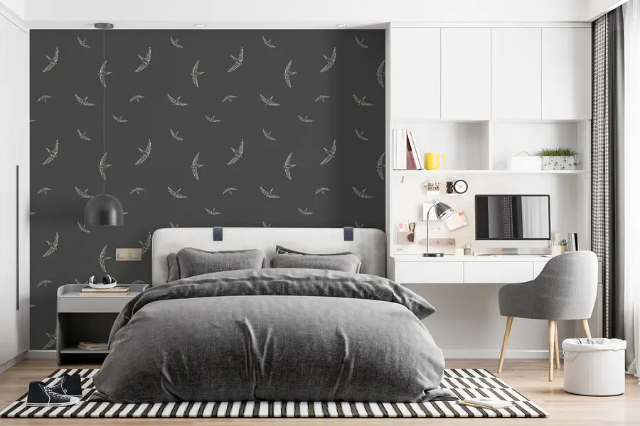 Перетворіть будь-яку кімнату за допомогою цього приголомшливого фотошпалера із зображенням ніжних білих птахів, що граціозно ширяють на темно-чорному тлі. Це ніби запрошення легкого вітерця всередину - ідеальний варіант для тих моментів, коли суєта повсякденного життя здається трохи важкою. Уявіть, як ви п'єте каву у своєму омріяному просторі, відчуваючи, як вас огортає відчуття спокою. Ці чарівні маленькі флаєри додають легкості, наче хочуть забрати ваші турботи і злетіти разом з ними. Крім того, вони є чудовим початком для розмови - адже хто не любить трохи магії, натхненної природою, вдома? Незалежно від того, чи це затишний куточок, чи жвава вітальня, цей фотошпалери готовий розправити свої крила і вдихнути життя у ваш декор.