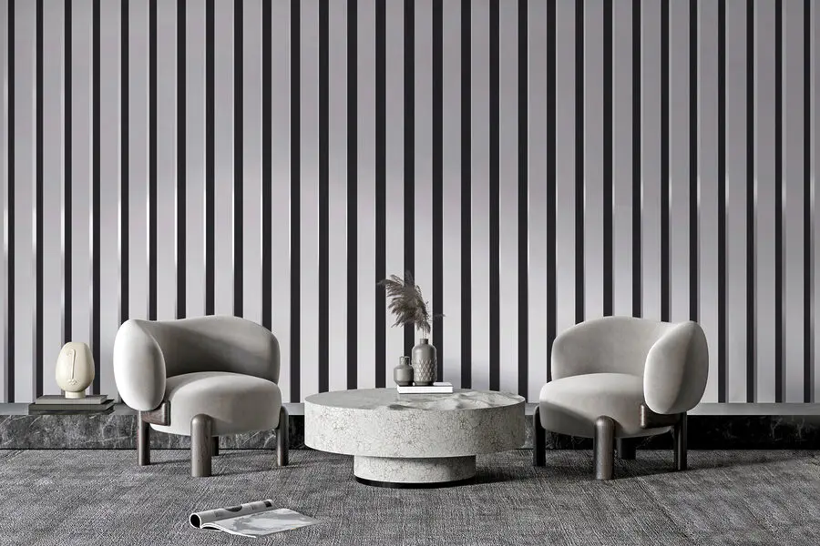 Уявіть, що ви потрапляєте в простір, який виглядає невимушено стильно, наче ви зайшли до модної кав'ярні. Цей фотошпалери з його вражаючими вертикальними лініями та грайливими тінями саме це і робить - він затягує вас чистою, але динамічною атмосферою. Це наче свіжий ковток повітря для ваших стін, що дарує відчуття спокою та хвилювання водночас. Ідеальний для затишного куточка для читання або сучасної вітальні, він створює тло, яке викликає цікавість. Люди можуть навіть зупинитися і сказати: "Ого, який класний простір!". Це той тип муралу, який шепоче про вишуканість, але не кричить - інтригуючий баланс, який важко ігнорувати.